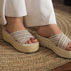 Espadrille Soles Criss Cross Wedges - Multi Color