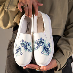 Slip-On Flower Embroidered BabyBlue Sneaker