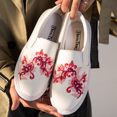 Slip-On Flower Embroidered Pink Sneaker