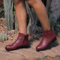 Stylish Ankle Boots with Embroidered Detail - Maroon