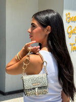 What sets this bag apart is the luxurious oversized gold chain strap, featuring interlocking round links that add a statement-making edge. Compact yet functional, this bag is perfect for carrying your essentials with style whether slung over your shoulder or carried by hand for a more elevated flair.