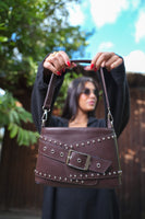 Elevate your everyday style with the Studded Leather Shoulder Bag, a chic blend of classic elegance and modern edge. Crafted from smooth faux leather in a warm chestnut brown tone, this bag features gold-tone stud embellishments arranged in clean vertical lines, adding a sophisticated yet bold accent.