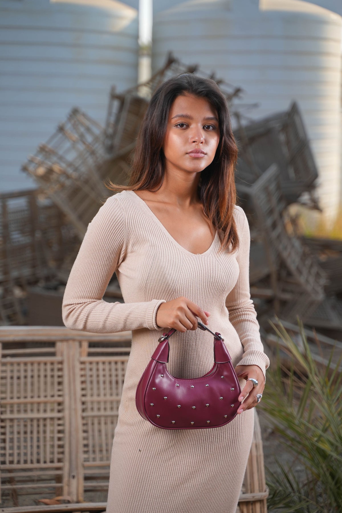 The Ivory Nova Studded Shoulder Bag | Burgundy