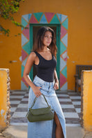 Discover the Luna Classic Flap Shoulder Bag — a refined off-dark green vegan leather handbag that combines timeless elegance, minimal design, and everyday functionality.