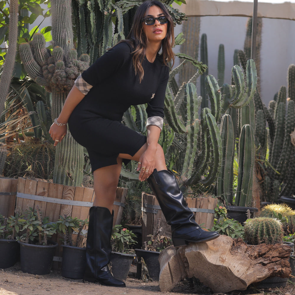 Step out in style with these Chic Knee-High Boots in classic black. With a sleek and trendy design, these boots are perfect for any occasion. Add a touch of sophistication to your outfit while staying comfortable with their knee-high design. Your wardrobe will thank you!