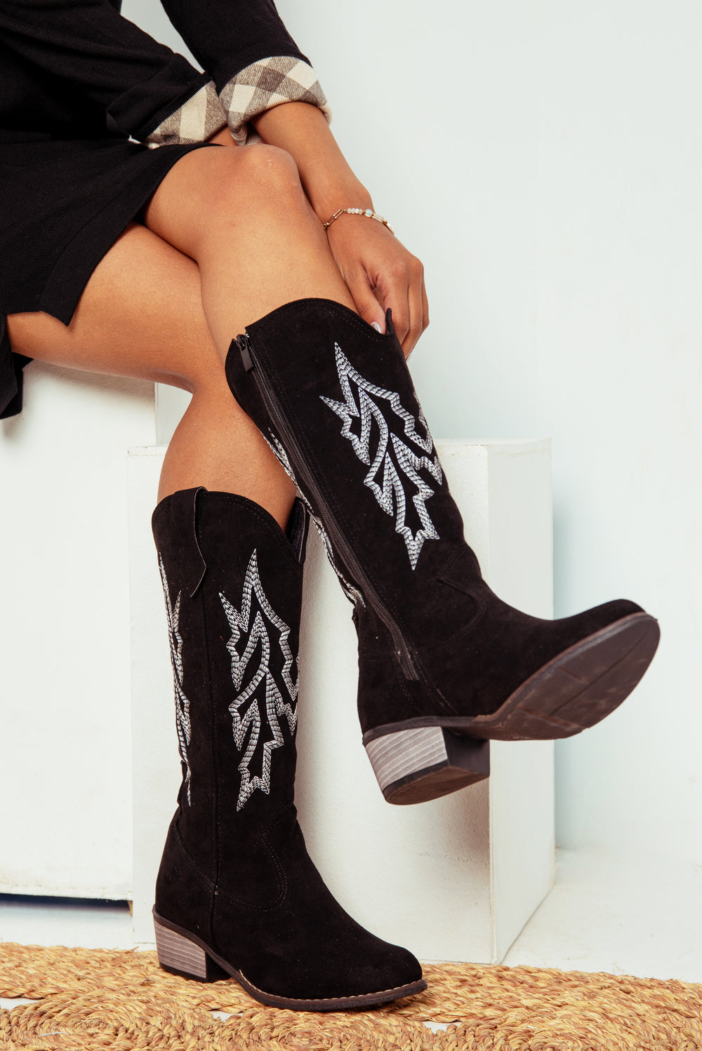 Cow Boy Texas Embroidered Knee Boots - Black