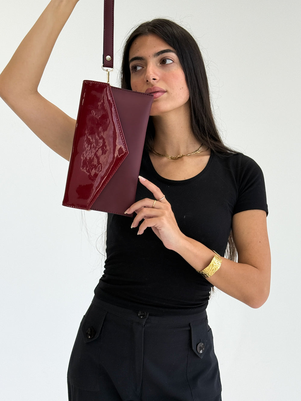 Burgundy Patent Leather Envelope Clutch with Wristlet