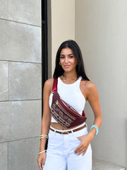 Vibrant and adventurous, the Crimson Nomad Crossbody Belt Bag is your go-to statement piece for bold days out and spontaneous journeys. Crafted from woven fabric with a striking tribal pattern in deep reds, teal, black, and ivory, this eye-catching piece combines global inspiration with contemporary function.