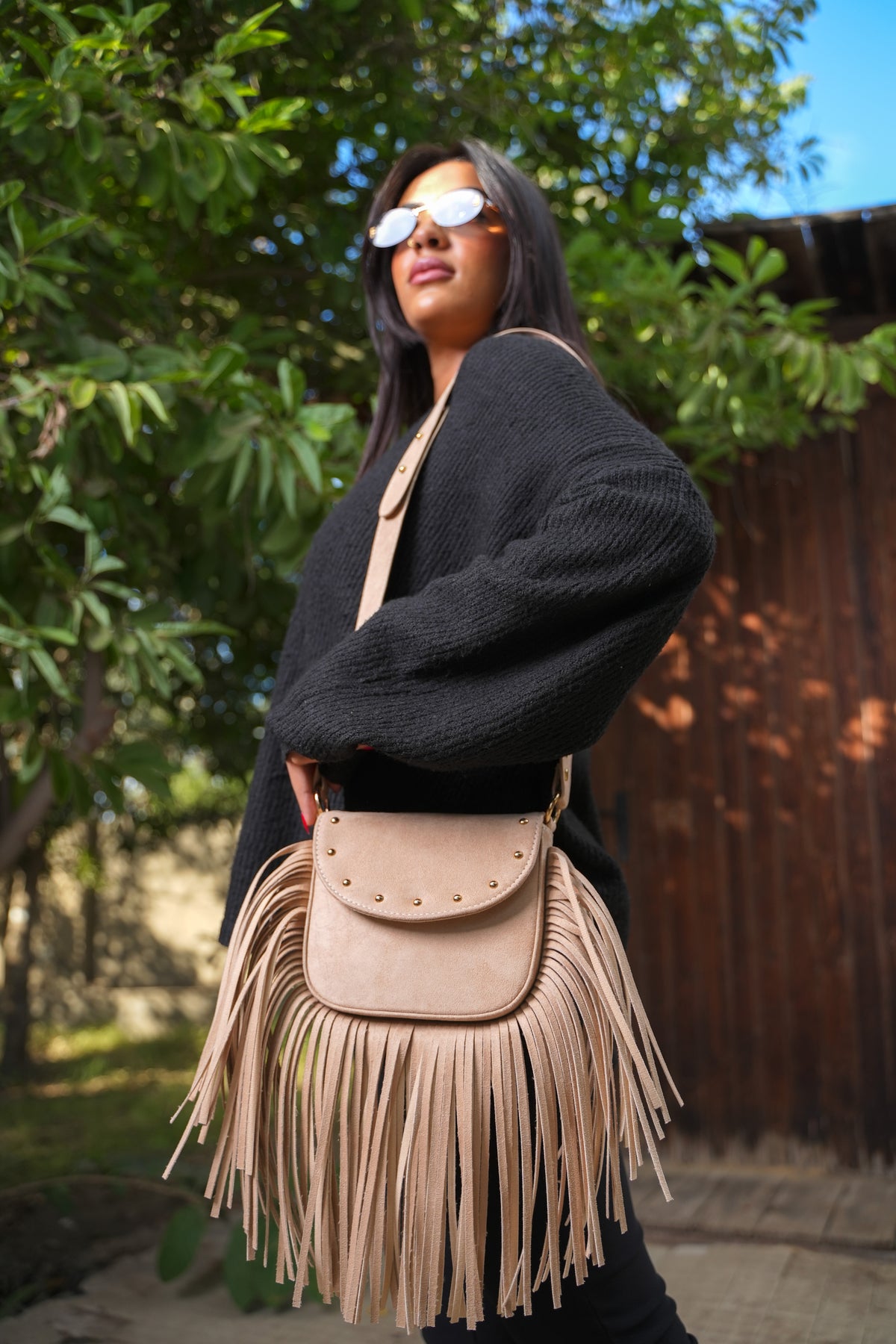 Turn heads with the Crimson Fringe Suede Shoulder Bag, a bold statement piece that fuses boho chic with modern sophistication. Crafted from soft faux suede in a rich crimson hue, this bag features long playful fringes that add dynamic movement and personality to your look.