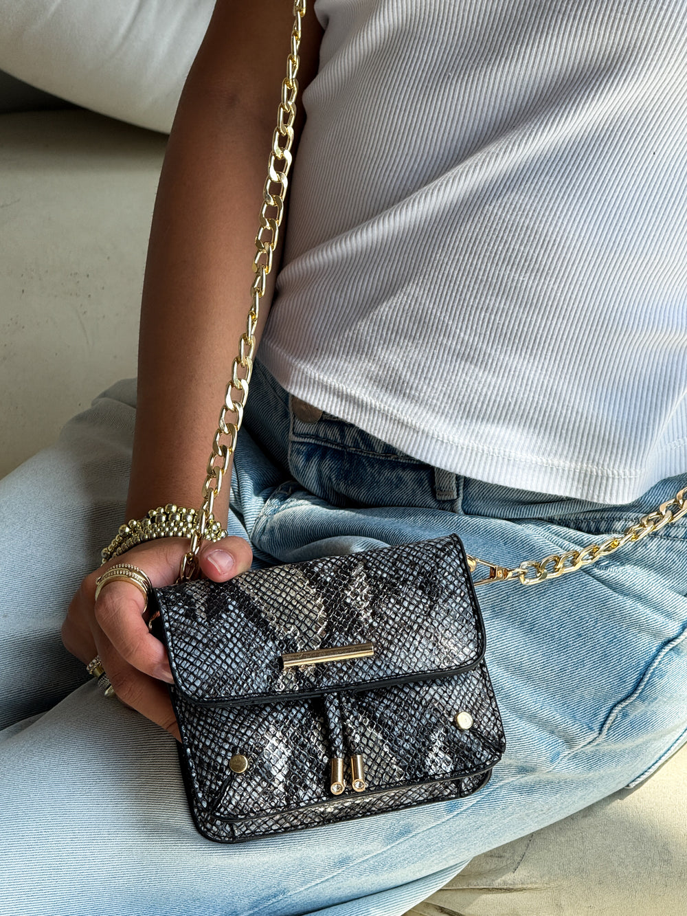 Mini Faux Snake-Skin Crossbody Bag - Black