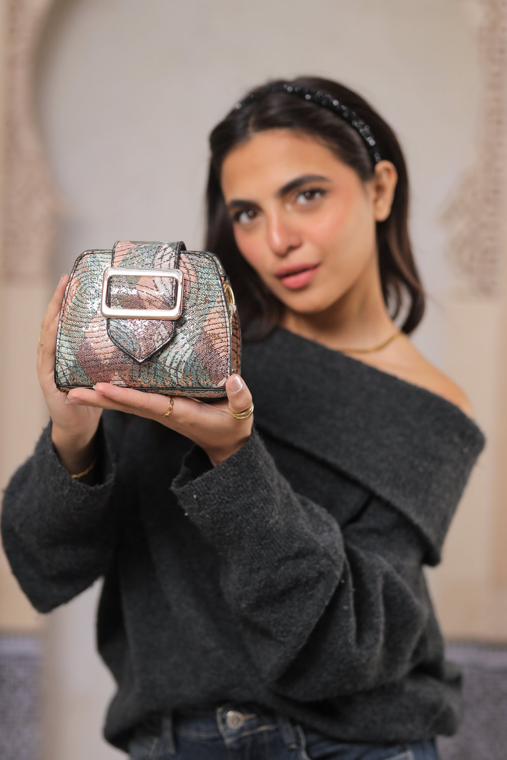 Make a bold statement with the Wild Elegance Bag, a must-have accessory for fashion-forward individuals. Crafted from high-quality, glossy faux leather, this eye-catching crossbody bag features a sleek, structured silhouette with a metallic pink finish that adds a touch of glam to any outfit.