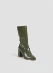 These olive green patent boots are the ultimate power piece for the woman who owns her style. The comfortable block heel allows for all-day wear, while the glossy finish ensures you turn heads. They are an authentic expression of modern, fearless fashion that doesn't compromise on comfort.