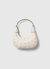 Step into modern elegance with the Ivory Nova Studded Shoulder Bag, a chic vegan leather crescent bag with silver studs — perfect for everyday glam and evening sophistication.