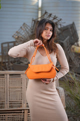 Discover the Luna Classic Flap Shoulder Bag — a refined off-orange vegan leather handbag that combines timeless elegance, minimal design, and everyday functionality.