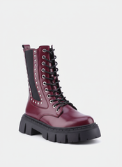 "The Riot" Studded Platform Combat Boots "Maroon"
