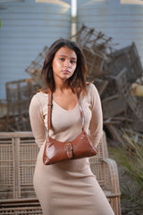 The Siena Buckle Shoulder Bag is where timeless design meets everyday sophistication. Crafted from supple vegan leather in a warm caramel brown tone, this structured bag embodies modern minimalism with vintage charm. Its signature front buckle detail and subtle metal studs give it a refined edge, making it the perfect accessory for women who love effortless style.