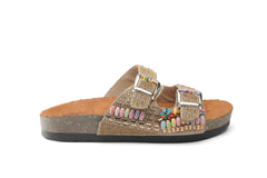Step into elegance and ease with the Regal Bloom Comfort Sandals—a perfect blend of artisanal charm and all-day comfort. Featuring a soft, contoured footbed and a durable speckled wedge sole, these sandals are designed for both support and style. The upper straps are adorned with intricate rhinestone patterns and vibrant multi-colored stones, offering a playful yet luxurious look. Ideal for casual outings or festive occasions, these sandals let your feet shine with personality and grace.
