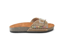 Step into elegance and ease with the Regal Bloom Comfort Sandals—a perfect blend of artisanal charm and all-day comfort. Featuring a soft, contoured footbed and a durable speckled wedge sole, these sandals are designed for both support and style. The upper straps are adorned with intricate rhinestone patterns and vibrant multi-colored stones, offering a playful yet luxurious look. Ideal for casual outings or festive occasions, these sandals let your feet shine with personality and grace.