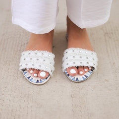 Studded Fringe Slides - White