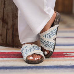 Tribal Fringe Sandals - Baby Blue