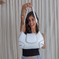 Make a statement with the bold Lunar Curve Bag in White. Its unique curved shape adds a touch of edginess to any outfit. Roomy enough for all your essentials, it's perfect for a day out with friends or a night out on the town. (Note: may induce bag envy.)