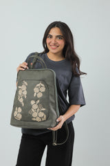 Laptop Backpack Embroidered Flower - Olive Green
