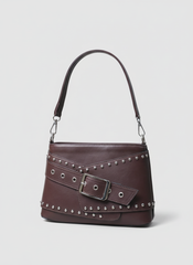 Elevate your everyday style with the Studded Leather Shoulder Bag, a chic blend of classic elegance and modern edge. Crafted from smooth faux leather in a warm chestnut brown tone, this bag features gold-tone stud embellishments arranged in clean vertical lines, adding a sophisticated yet bold accent.
