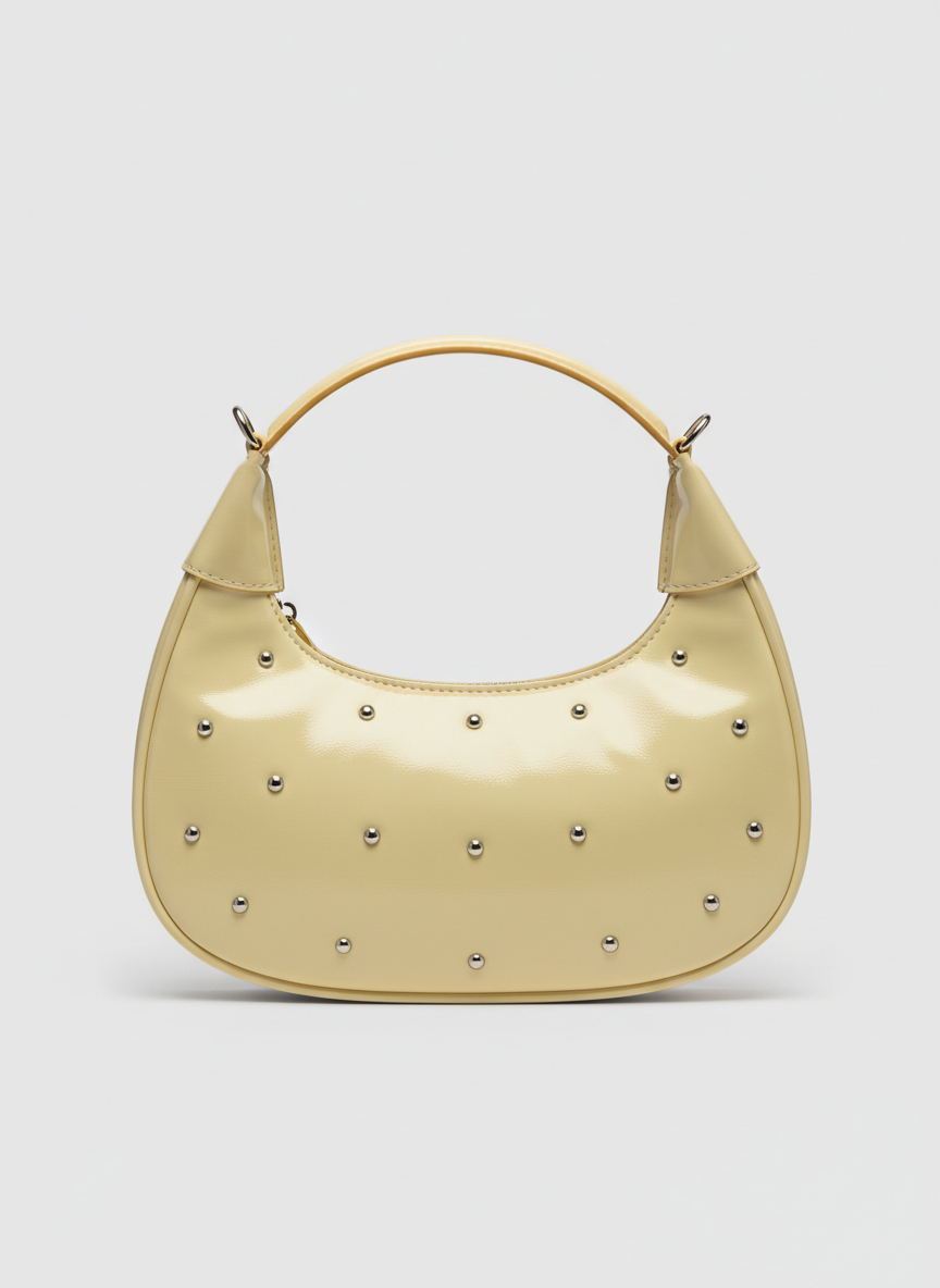 The Ivory Nova Studded Shoulder Bag | light pastel yellow