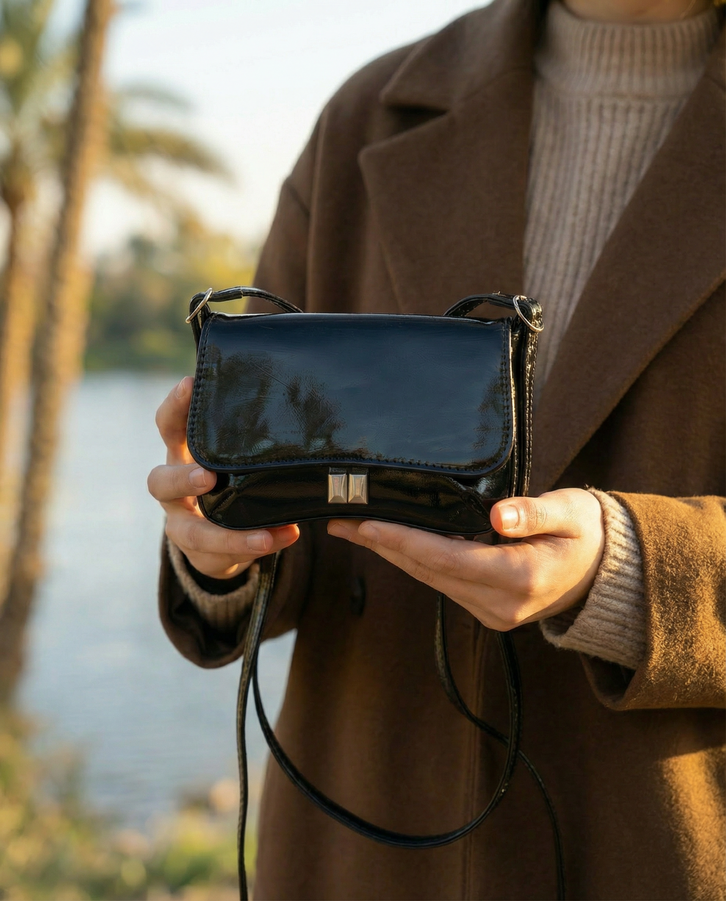 Elevate your everyday style with this sophisticated black crossbody bag. Crafted with premium materials, this versatile piece features a sleek flap closure with elegant metal hardware and an adjustable shoulder strap for comfortable all-day wear.