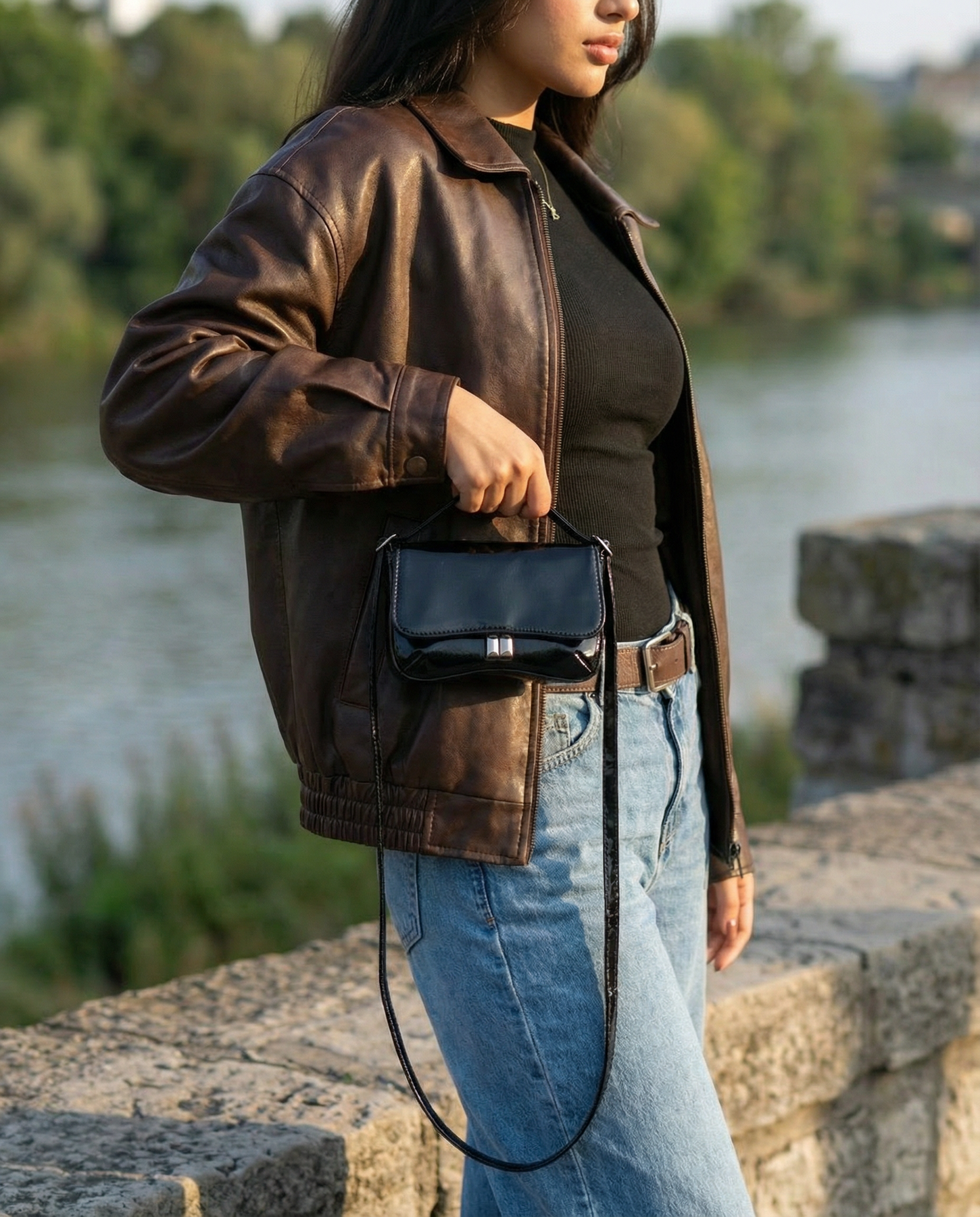 - Timeless black color with glossy patent finish