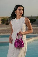 Laguna Woven Bucket Bag - Hot Pink Metallic