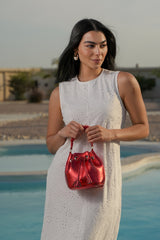 Laguna Woven Bucket Bag - Ruby Red Metallic