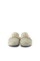 Step into effortless style with these Havane suede slip-on mules, designed with a chic scalloped edge and embellished with edgy gold stud accents. Featuring a cushioned insole for comfort and a versatile silhouette, these mules are perfect for pairing with casual denim or elevating a polished day-to-night look. A modern twist on a classic design, they’re both stylish and easy to wear.