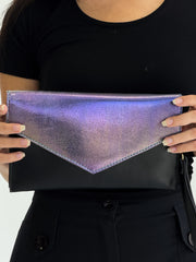 Iridescent Purple-Black Envelope Clutch with Shoulder Strap