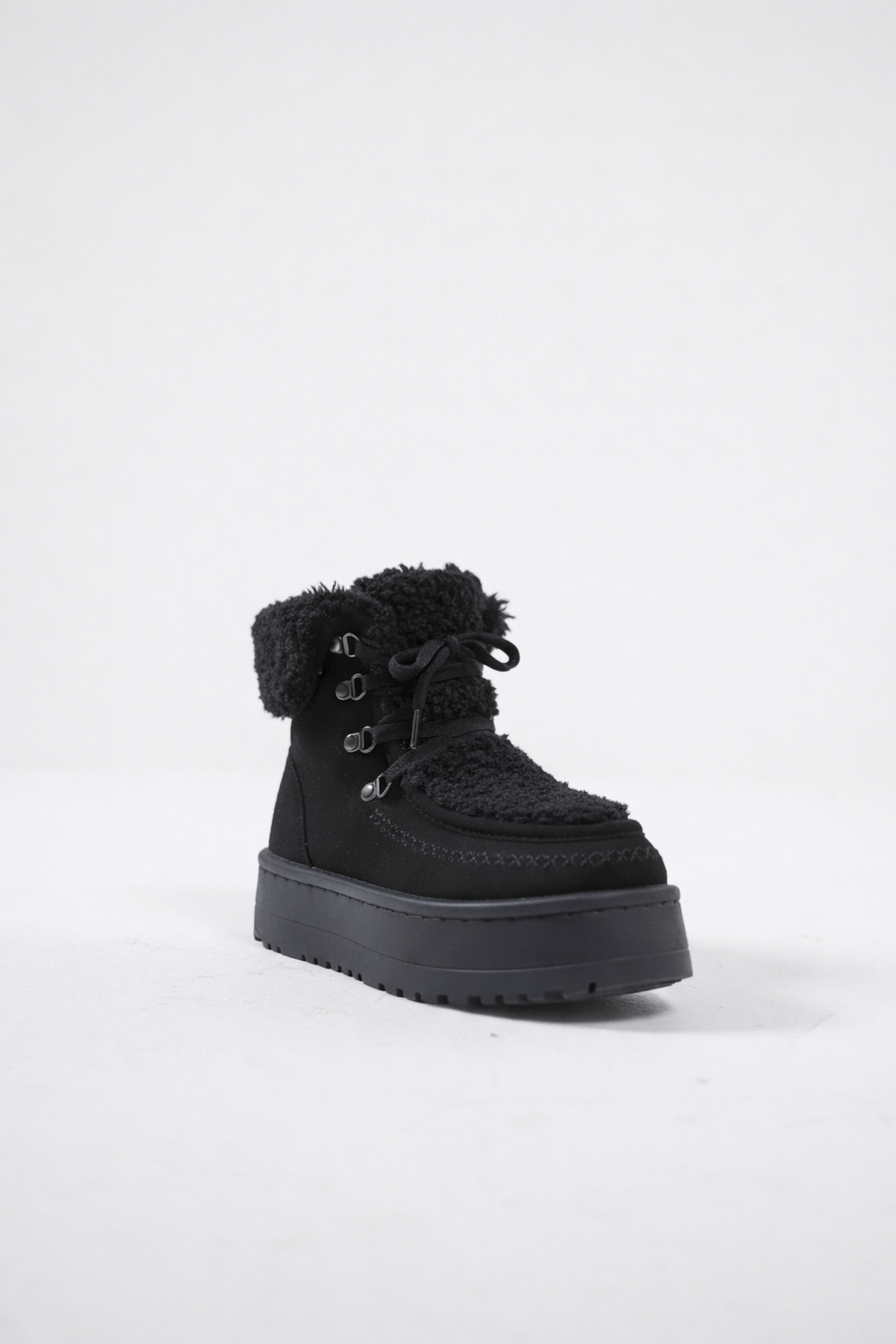 Cozy Shearling Platform Winter Boots - Black