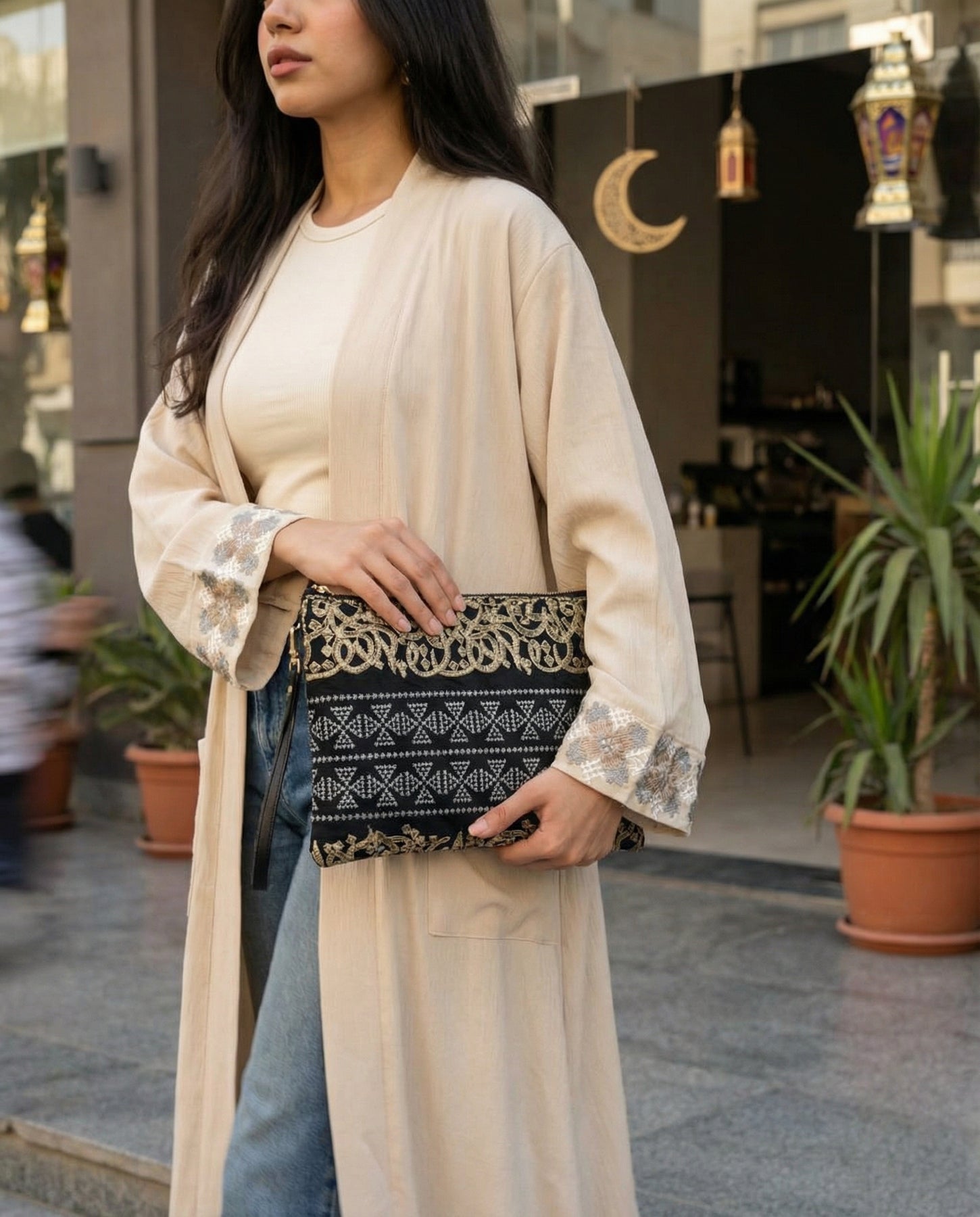 Style Tip: Designed to bridge the gap between casual and dressy. Pair it with your favorite light-wash jeans and a satin kimono for that perfect "Smart Casual" Suhoor look, or style it with a full monochrome abaya for Iftar events.