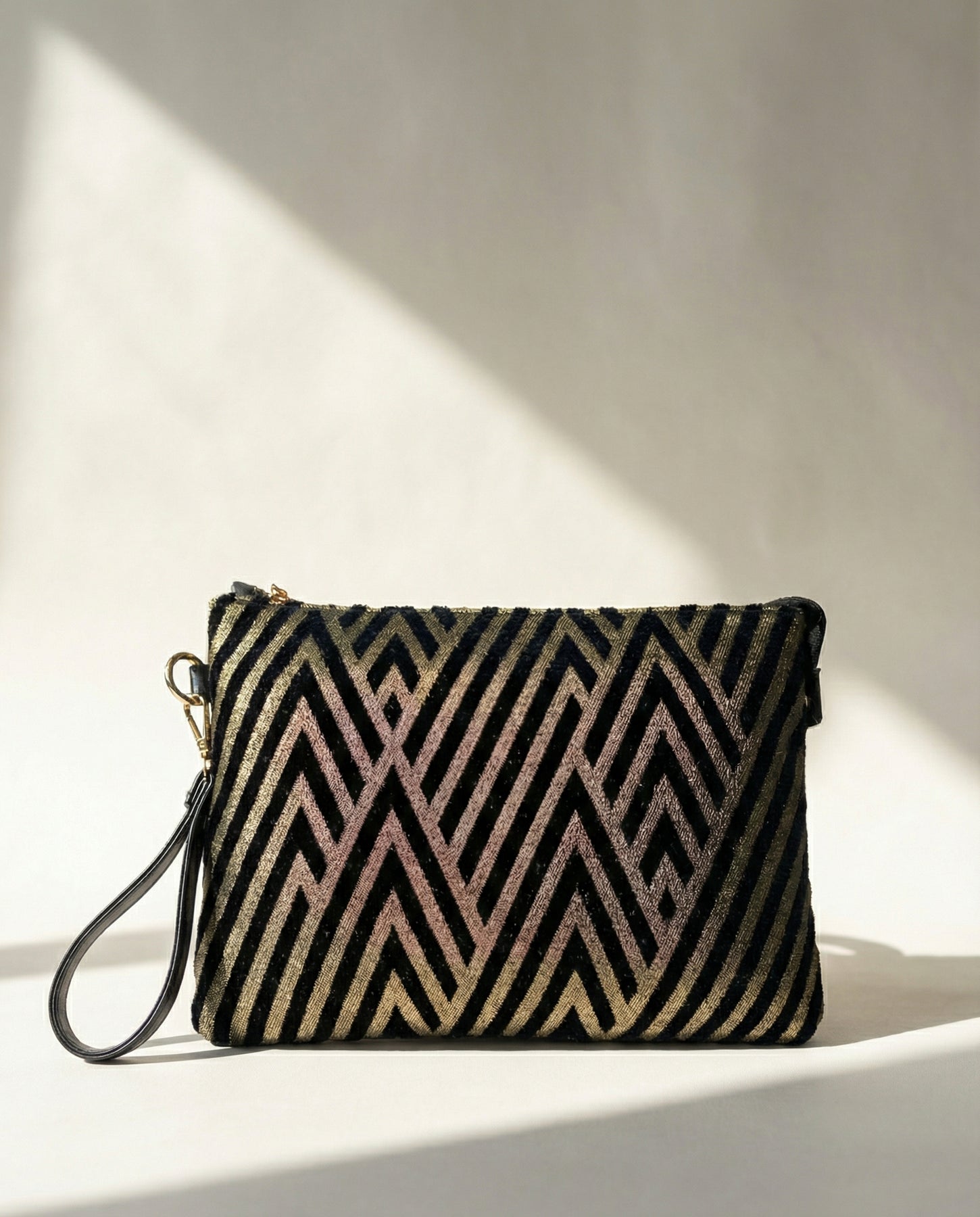 Meet the Layal Clutch—the ultimate finishing touch for your Ramadan wardrobe. Featuring a striking geometric bronze pattern on a luxe velvet-feel base, this piece catches the light perfectly during evening gatherings.
